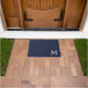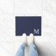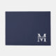 featuring personalized white monogram in classic serif font style with box of name in the middle of monogram on navy blue background.