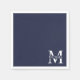 featuring personalized white monogram in classic serif font style with box of name in the middle of monogram on navy blue background.