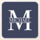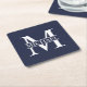 Navy Blue Personalized Monogram and Name Square Paper Coaster