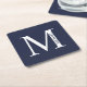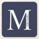 Navy Blue Personalized Monogram and Name Square Paper Coaster