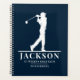 This personalized golf planner is the perfect way to keep track of your golf schedule for the year. This design features a golfer swinging a club and has two text fields you can use to personalize it - perhaps with a name and golf club.