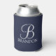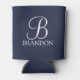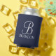 Navy Blue Personalized Script Monogram and Name Can Cooler