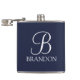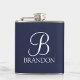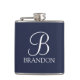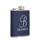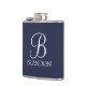 Navy Blue Personalized Script Monogram and Name Hip Flask