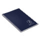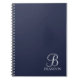 features personalized monogram in white classic script font style and name in white classic serif font style on navy blue background.