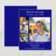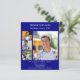 Create your own unique photo collage. Use four, 4 of your favourite photos. Personalize and add a name and party details. Navy blue background, white text.