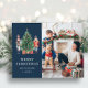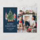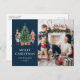 Navy Blue Photo Holiday Postcard. This cute and unique holiday nutcracker Merry Christmas photo postcard features hand-painted watercolor nutcracker toy soldiers around a beautiful tree and text for adding your family name and year. The back includes a text for personalizing. Find matching items in the Christmas Holiday Nutcracker Collection.