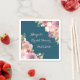 Bridal Shower napkins in navy blue with light pink vintage watercolor wildflowers.