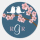 Navy Blue & Pink Cherry Blossom Spring Wedding Classic Round Sticker