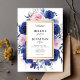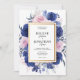 Navy Blue Pink Floral Garden Elegant Wedding Invitation