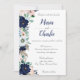 A beautiful wedding invitation with elegant and floral design. These invitations feature gorgeous navy blue and pink flowers, along with some greenery. Scripted font holds all of your wedding details. These are great for all seasons of weddings: fall, winter, spring and summer. Will work great for both outdoor and indoor weddings.