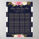 Navy Blue Pink Floral Wedding Seating Chart 12