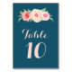Navy Blue Pink Floral Wedding Table Number Cards