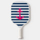 Navy Blue Pink Nautical Anchor Stripes Pickleball Paddle