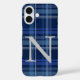 Navy Blue Plaid Tartan Cute Retro Aesthetic Monogram Phone Case