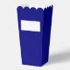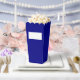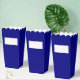Navy blue popcorn boxes with a blank white space to write any name or message.