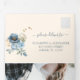 The color scheme is perfect for a dusty blue and navy theme! By having 3 sections, I have the center for the invitation, the rsvp card as we have entree choices which I personalized. But I took the ring and detail section and turned it into a recipe card for the shower. None of the othe shower invitations had this - I would have done 3 separate items thus raising postage costs. It takes a regular stamp. The printing is clean and crisp. I played with editing. The recipe card I didn’t include lines. The paper is heavy.