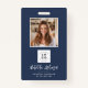 Navy blue modern minimal photo QR Code name tag logo badge design.