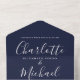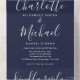 Navy Blue QR Code Script Minimalist Wedding All In One Invitation