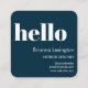 Navy Blue | QR Code Social Media Hello Square Business Card