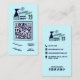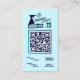 Add a unique and simple yet trendy visual promotion of your residential and commercial cleaning services with this business card. This modern template is also for entrepreneurs who love minimalist creative designs. It shows a cool design theme with light blue background and cute logo of spray bottle in navy blue tone with water picture effect, artistic 3d texts and graphic of cleaners. It also features a QR code with beautiful metallic frame gradient of teal and deep blue colour scheme. The addition of contact and social media icons in aesthetic gradients also make it more essential for professional marketing your service. You can customize it by replacing the details with your information.