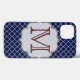 Navy Blue Quarterfoil Lattice Quarter Foil Monogram Initial Personalized Custom Fabric Pattern IPAD HARD CASE