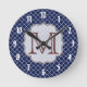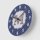 Navy Blue Quarterfoil Lattice Quarter Foil Monogram Initial Personalized Custom Fabric Pattern Wall Clock
