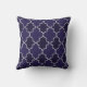 Navy Blue Quatrefoil Geometric Pattern Throw Pillow