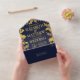 Navy Blue & Real Gold Foil Pressed Floral Wedding All In One Invitation