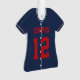 Commemorate an awesome season for your favourite baseball player with this cool custom ornament in a navy blue and red colorway. Personalize the front with the player's name and number, and add more details to the back, including the team or league name, season, age, position, and coach name.