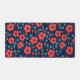 Navy Blue Red Poppy Floral Print Pattern Desk Mat