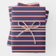 Navy Blue Red Stripe Pattern Wrapping Paper Sheet