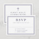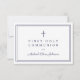 Navy Blue Religious Cross Boy First Communion RSVP Card