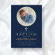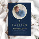 Personalized Navy Blue Religious Cross Boy Photo Baptism Gold Foil Invitation.