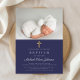 Navy Blue Religious Cross Photo Boy Baptism Invitation