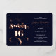 Rose gold and navy blue retro script photo Sweet 16 birthday party invitation with real rose gold foil.