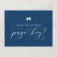 Pretty Parisian theme page boy proposal card. Ask family and friends to be part of your wedding with this personalized "Will you be my page boy" card. It features a bow and an elegant script. on a navy blue background Personalize by adding a name and message