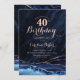 Navy Blue Rose Gold Agate 40th Birthday Invitation