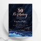 Navy Blue Rose Gold Agate Marble 50th Birthday Invitation