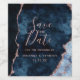 Navy Blue & Rose Gold Foil Watercolor Marble Agate Gilded Geode Design, with Modern and Script fonts. Trendy and Chic Wedding Save the Date Coasters!