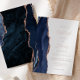 The left-hand edge of this elegant modern wedding invitation features a navy blue watercolor agate border trimmed with faux rose gold glitter. The customizable text combines handwriting, copperplate and italic fonts in real rose gold foil on a white background. The reverse side features a matching navy blue and rose gold agate design.