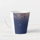 Navy Blue Rose Gold Blush Pink Glitter Monogram Latte Mug