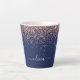 Navy Blue and Rose Gold - Blush Pink Sparkle Glitter Script Monogram Name Latte Coffee Cup Mug. This makes the perfect sweet 16 birthday, wedding, bridal shower, anniversary, baby shower or bachelorette party gift for someone that loves glam luxury and chic styles.