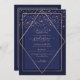 This elegant and modern graduation party invitation is ideal for a classy and formal event. It features a faux printed sparkly rose gold glitter confetti sprinkled over a thin geometric diamond and rectangle border with a navy blue thick border underneath and light navy blue fill. It's chic, luxurious, pretty, simple, and trendy; the perfect design for your special day.