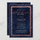 Navy Blue Rose Gold Confetti Bridal Shower by Mail Invitation