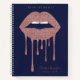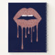 Navy Blue Rose Gold Dripping Glitter Lips Makeup Notebook