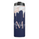 Navy Blue Rose Gold Dripping Marble Monogram Thermal Tumbler