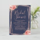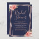 Navy Blue Rose Gold Floral Bridal Shower Invitation