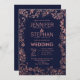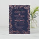 Navy Blue Rose Gold Floral Glitter Wedding Invitation