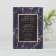 Navy blue rose gold frame marble wedding invitation
