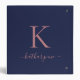 Girly Pink Rose Gold Binder featuring pink and mauve custom name and monogram on a chic navy blue background. Easy to customize and perfect for school or work! Please contact us at cedarandstring@gmail.com if you need assistance with the design or matching products.